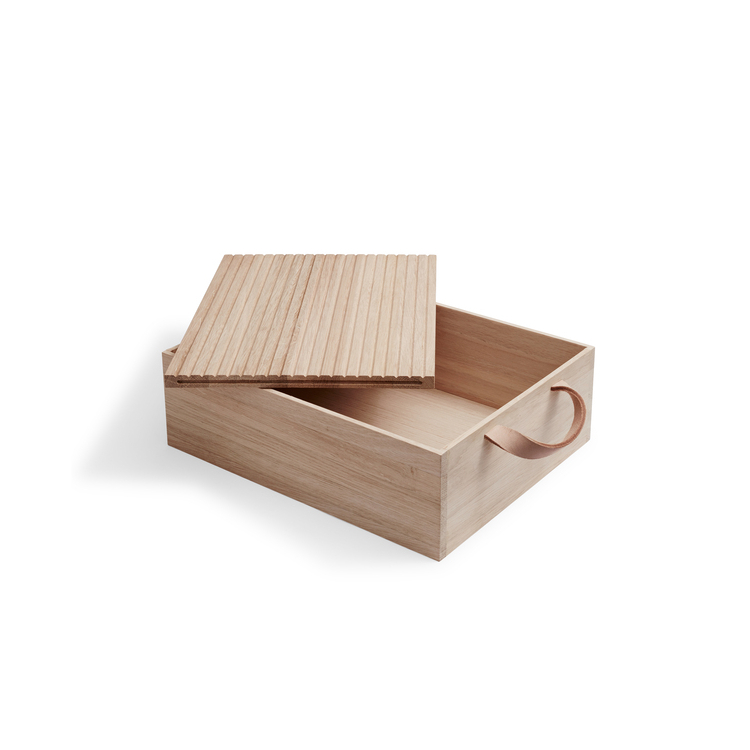 Zásobník na chlieb Norr od spoločnosti Skagerak vám uľahčí skladovanie pečiva. Vďaka koženým rukovätiam môžete chlebník vziať so sebou na záhradu alebo kamkoľvek potrebujete. Drážkovaný poklop na jednej strane slúži aj ako doska na krájanie. Chlebník je vyrobený z neošetreného dubového dreva, ktoré má vynikajúce antibakteriálne vlastnosti. Dizajn výrobku má ľahký škandinávsky vzhľad.