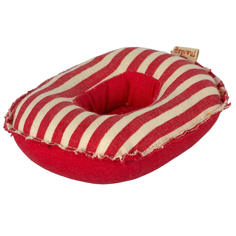 Štýlový čln pre myšky Maileg v červeno-bielom pruhu pozýva myšky na prázdninové dobrodružstvo plné snívania, hier a letnej pohody. Je vyrobený z filmom obalenej látky, ktorá mu dodáva autentický námornícky vzhľad – ako by práve priplával z malého prístavu plného rozprávok.