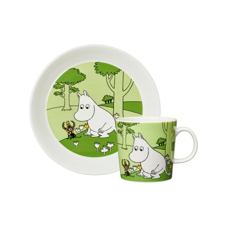 Darčeková súprava hrnčeka a taniera od fínskej značky Arabia 1873 poteší ako darček dieťa aj dospelého, ktorý je fanúšikom týchto roztomilých rozprávkových bytostí. Hrnček a tanier sú vyrobené z kvalitného porcelánu a zdobené motívom z rúk ilustrátorky Tove Slotte, ktorá sa inšpirovala pôvodnými kresbami legendárnej autorky múmií Tove Jansson. Mumin Troll je veselé a hravé stvorenie, ktoré je zvedavé a vždy pomáha ostatným. Rád zbiera kamene, mušle a miluje more, rovnako ako celá muminia rodina. Riad je vhodný do umývačky riadu, mikrovlnnej rúry, rúry na pečenie a mrazničky.