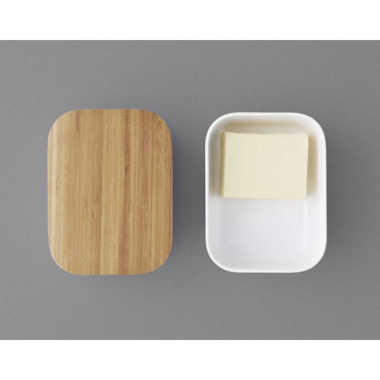 Praktický biely box na maslo Box-It dánskej značky Rig-Tig s bambusovým vekom je dielom dizajnérskej dvojice Jehs & Laub. Rovnako ako nádoby na pečivo z rovnakej kolekcie ich môžete kombinovať. Vďaka svojmu minimalistickému dizajnu ľahko zapadnú do každej kuchyne.