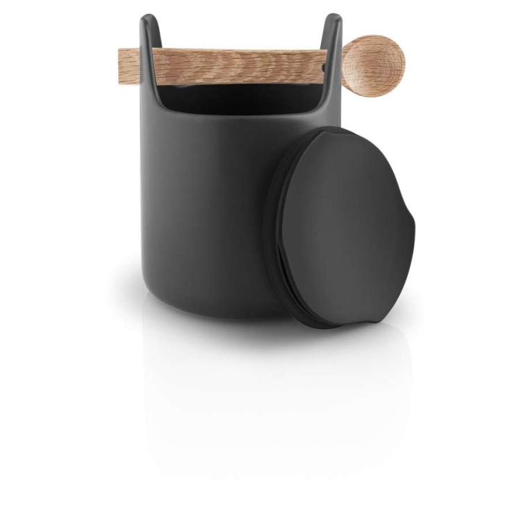 Keramická multifunkčná nádoba na potraviny Eva Solo bude nepostrádateľným pomocníkom vo vašej kuchyni. Uložíte do nej kávu, cukor alebo iné sypké potraviny. Jednoduchý tvar, nadčasová čierna farba. Táto severská značka vám však vždy ponúka viac než len premyslený dizajn. Tu sa môžete vždy spoľahnúť aj na funkčnosť.