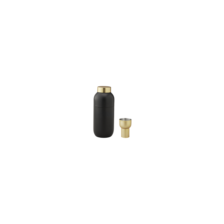 Koktailový šejker Collar je pre fanúšikov tejto kolekcie značky Stelton absolútnym "must have". Súčasťou 500 ml šejkra je aj odmerka na 4 a 2 cl a sitko na oddelenie tekutiny a ovocia. Šejker je vyrobený z nehrdzavejúcej ocele potiahnutej teflónom. Dizajn vyniká minimalistickým tvarom a kontrastom medzi matnou čiernou a mosadznou povrchovou úpravou veka/šálky.