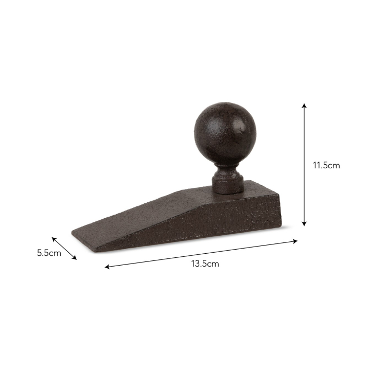 Zarážka je vyrobená z masívnej liatiny a jej guľovitý tvar umožňuje pohodlné uchopenie pri presúvaní medzi miestnosťami alebo pri zasúvaní pod dvere. Je navrhnutá na použitie v interiéri a vďaka jednoduchému prevedeniu čiernej farbe sa ľahko začlení do klasických aj moderných priestorov.