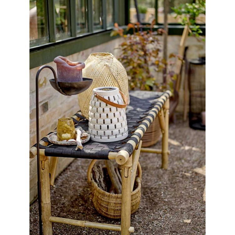 Vytvorte si doma alebo na záhrade príjemnú atmosféru pomocou lucerny Musu od značky Bloomingville. Lucernu možno zavesiť za rukoväť zo silného pleteného jutového povrázku napríklad na vetvu stromu alebo ju môžete nechať voľne stáť na zemi. Vnútri pleteného bambusovej "koše" sa nachádza sklenená nádoba, ktorá chráni sviečku a jej plameň od sfúknutia vetrom. Plameň sviečky tak vytvára mihotavého svetlo, ktoré izbu, terasu či záhradu krásne zútulnia.