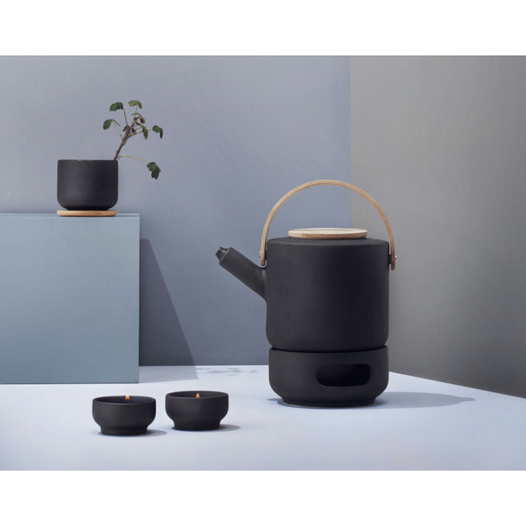 Rovnako ako celá kolekcia je ajTheo vyrobený z matnej čiernej kameniny a poskytuje skvelú atmosféru na pitie čaju, ktoré môžete premeniť na krásny rituál. Umiestnite do nej čajovú sviečku a na vrch ohrievača položte čajník, ktorý udrží čaj dlhšie teplý.