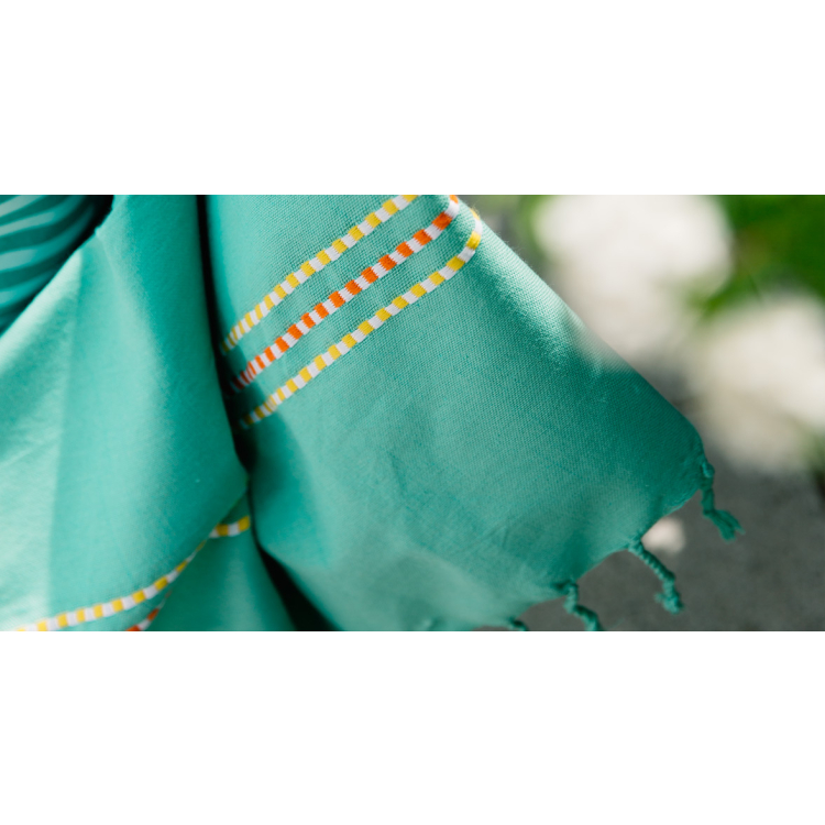 Mimoriadne savý uterák zo 100 % bavlny v lagúnovo modrej farbe je ideálny ako plážový uterák, osuška alebo sarong. Okamžite schne, takže bude vaším príjemným spoločníkom na letných dovolenkách. Uterák má po okrajoch nášivku a na oboch koncoch jemné ozdobné šnúrky.