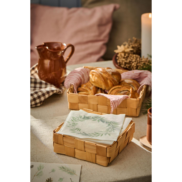 Vneste do svojho sviatočného stolovania sviežu eleganciu a prírodné kúzlo s papierovými obrúskami Green Wreath od dánskej značky IB Laursen. Jemný motív zeleného venca symbolizuje dodá vášmu stolu decentný, napriek tomu slávnostný nádych.