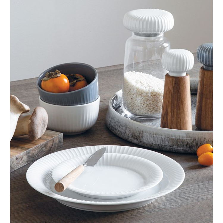Keramický tanier s pozdĺžnymi plastickými drážkami je inšpirovaný dielom svetoznámeho umelca Svenda Hammershøiho, po ktorom je pomenovaná celá kolekcia Hammershøi White. Pre spoločnosť Kähler ho navrhol nórsky priemyselný dizajnér Hans-Christian Bauer. Taniere môžete mať vo viacerých veľkostiach a vytvoriť tak nezabudnuteľný jedálenský servis.