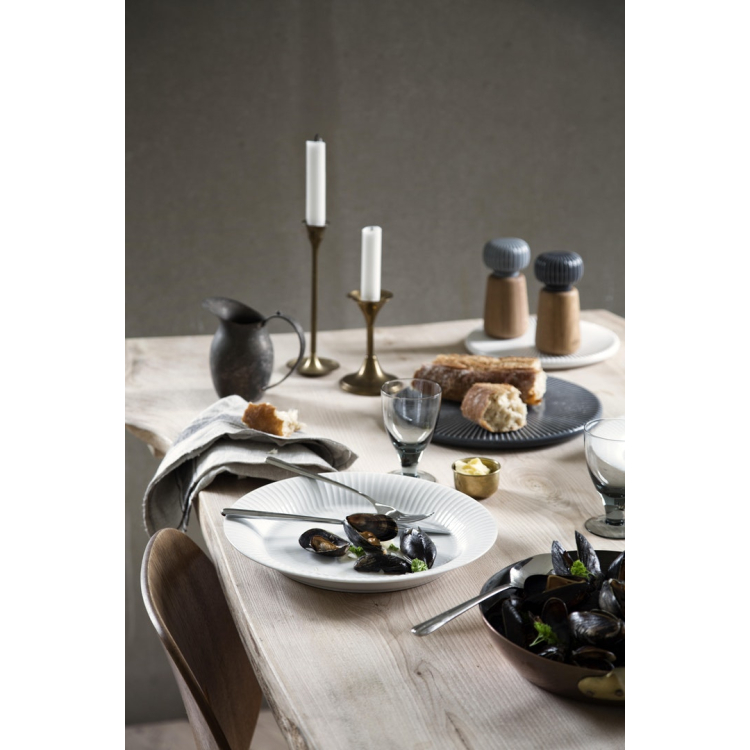 Keramický tanier s pozdĺžnymi plastickými drážkami je inšpirovaný dielom svetoznámeho umelca Svenda Hammershøiho, po ktorom je pomenovaná celá kolekcia Hammershøi White. Pre spoločnosť Kähler ho navrhol nórsky priemyselný dizajnér Hans-Christian Bauer. Taniere môžete mať vo viacerých veľkostiach a vytvoriť tak nezabudnuteľný jedálenský servis.