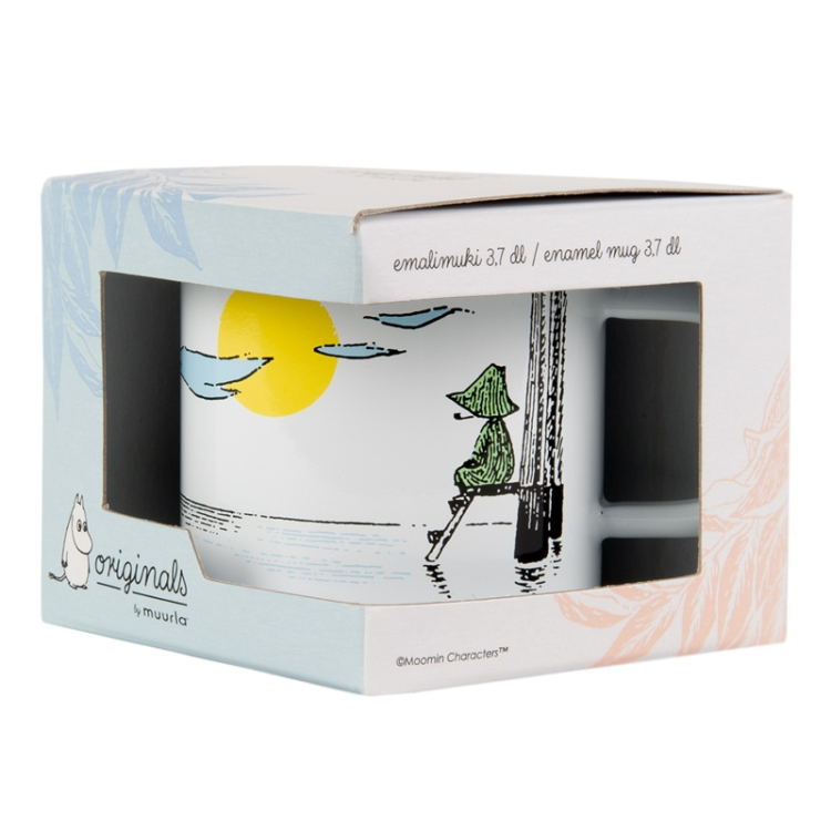 Séria Muurla Moomin Originals oslavuje najznámejšie ilustrácie slávnej fínskej autorky Tove Janssonovej a vyzdvihuje najmä originálne a významné kresby. Na plechovke Gone Fishing je nielen kresba rybára, ale vo vnútri hrnčeka sa pri okraji nachádza ďalší motív Mumina.