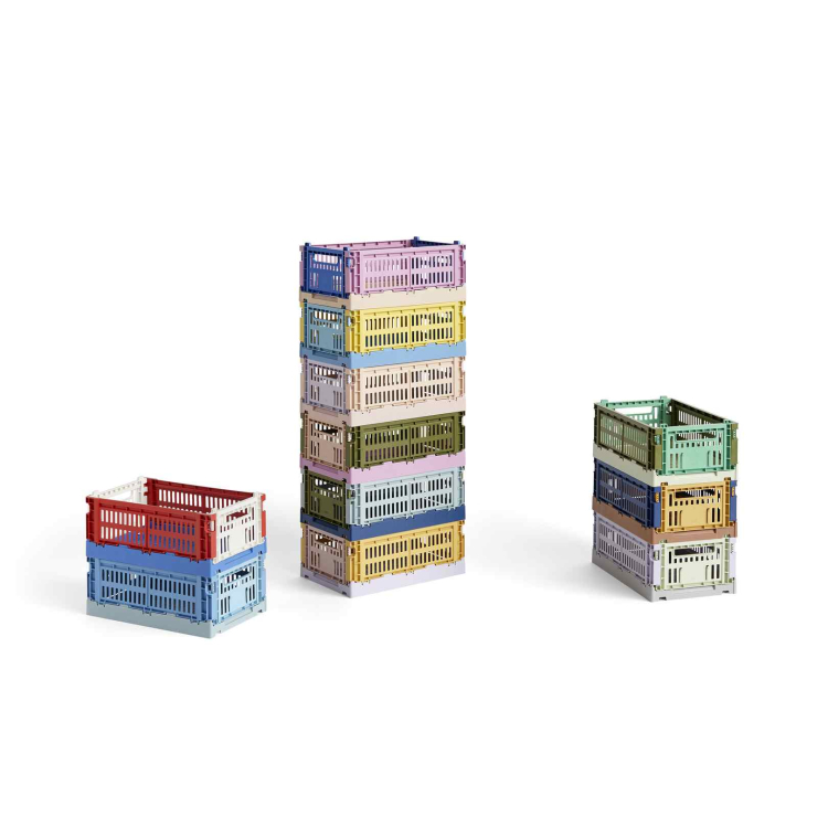 Farebné boxy od značky Hay sa vyznačujú funkčným dizajnom, priemyselnou estetikou a širokou škálou farieb. Kompaktné stohovateľné boxy sa skvele hodia na skladovanie všetkých typov predmetov. Môžete do nich uložiť obľúbené hračky vašej ratolesti, či kancelárie potreby v pracovni. Vďaka vzdušnému perforovanému dizajnu sú tiež vhodné na skladovanie kúpeľňových doplnkov. Úložné boxy ponúkame v niekoľkých farbách a veľkostiach. Vyberte si svoju obľúbenú farebnú kombináciu. Vyrobené zo 100% recyklovaného plastu.