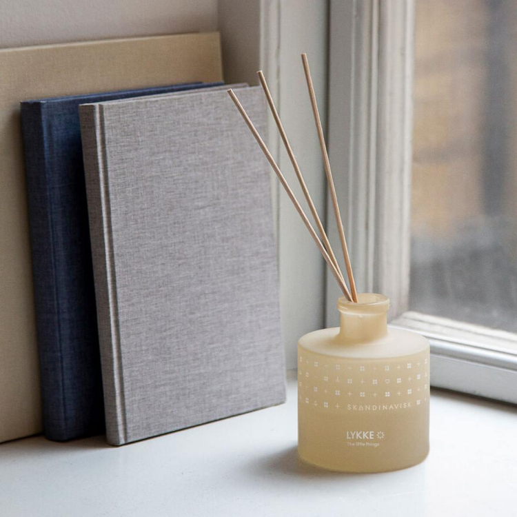 Vonný difuzér LYKKE provoní váš byt až po dobu tří měsíců. Rákosové tyčinky zajistí rozptýlení vůně napříč velkým prostorem, a čím více se jich v difuzéru nachází, tím je vůně intenzivnější. A pro ještě lepší funkčnost doporučujeme tyčinky jednou týdně obrátit. Aroma difuzéru se skládá z kombinace alkoholu a opravdového parfému. Design skleněné lahvičky působí čistým severským dojmem a v interiéru vypadá jako stylová dekorace.